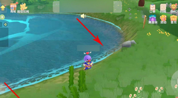 1、玩家直接点击前往小镇,可以在瀑布旁边找到小镇钓鱼点;