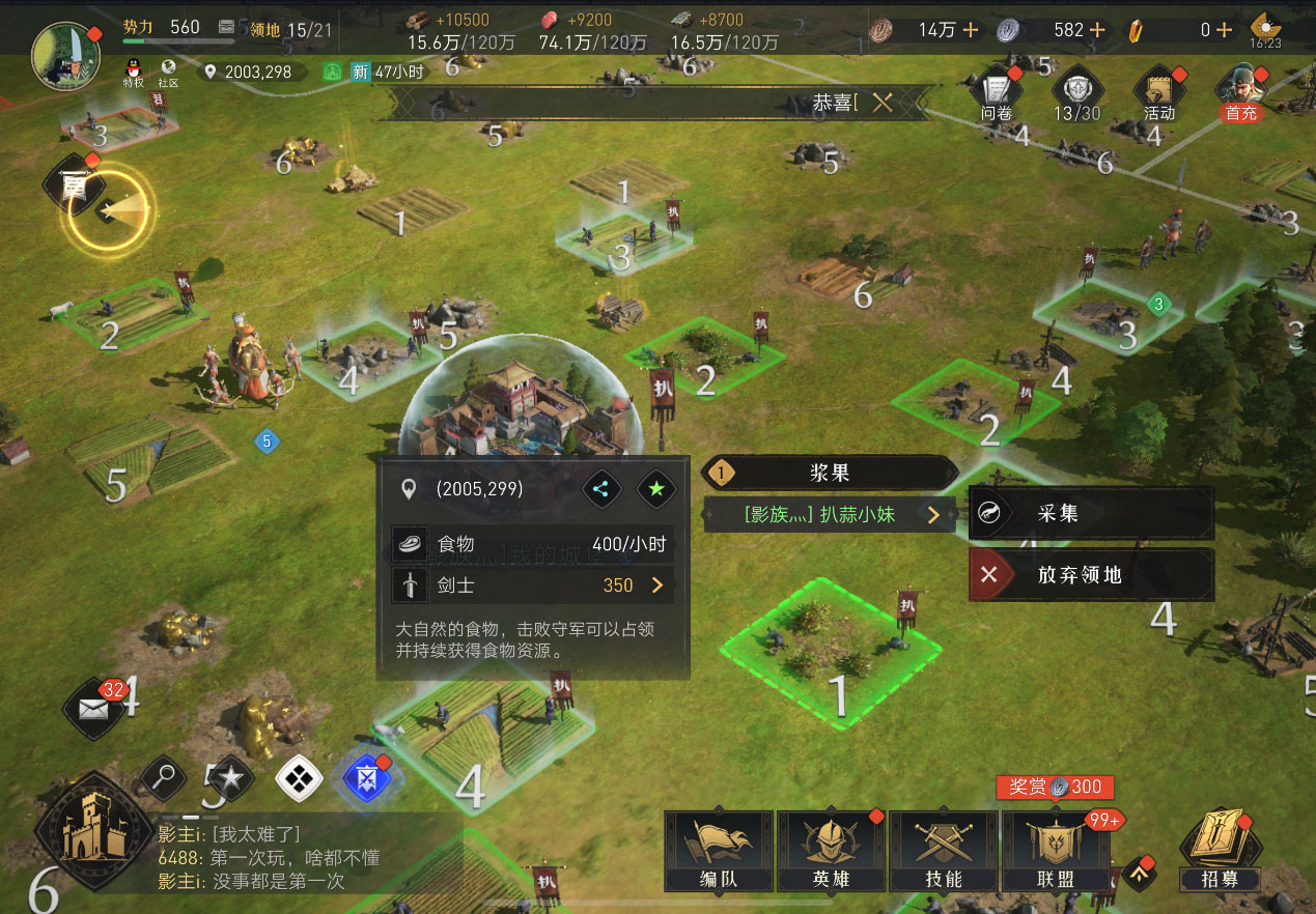我们再来看游戏在玩法上还原了几分原作的神韵,位于移动端的《重返帝国》扬长避短,简化了即时战斗复杂繁琐的按键操作,保留了具有《帝国时代》特色的自由城建体系,玩家亦能一手推动自己的城镇步入更先进的时代,并建造不同时期的奇观建筑。在文明刚起步的阶段,玩家需要指挥自己的农民前去采摘浆果,砍伐树木,捕捞鱼群,开采矿脉。积累食物,木材,石材,黄金四种资源的城镇基建玩法1:1还原了《帝国时代》中初期的经济发展路线。