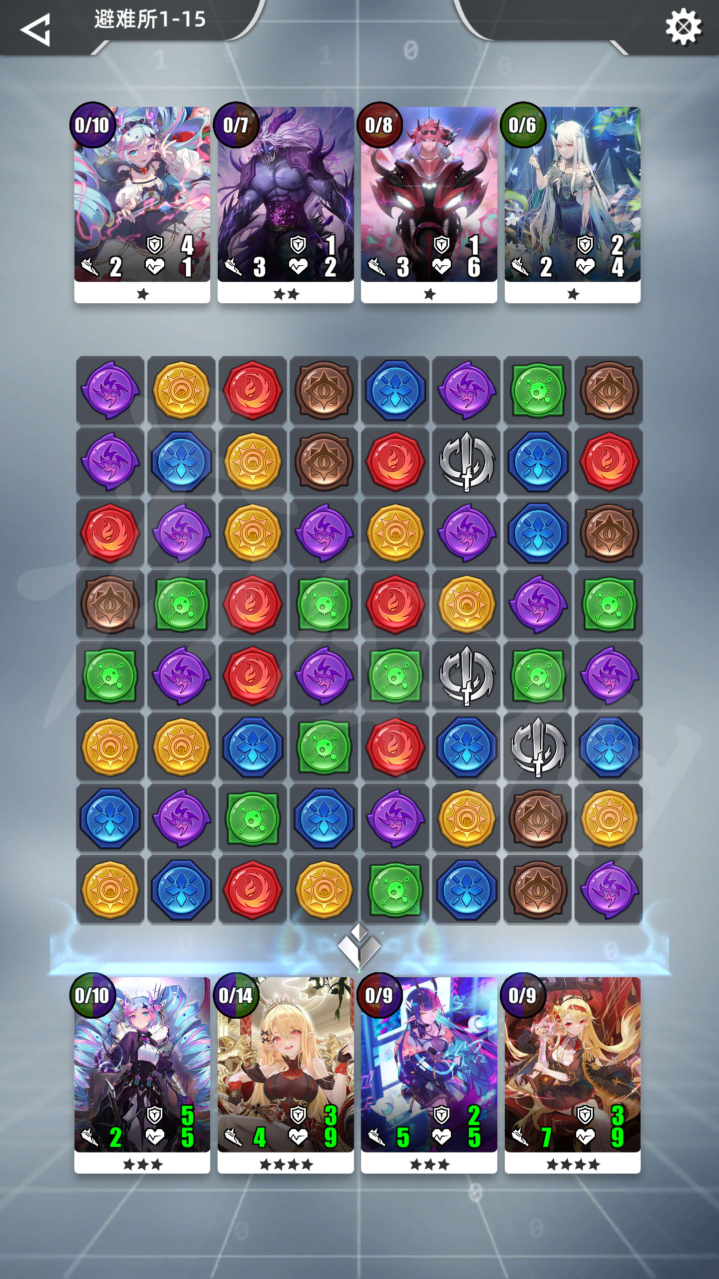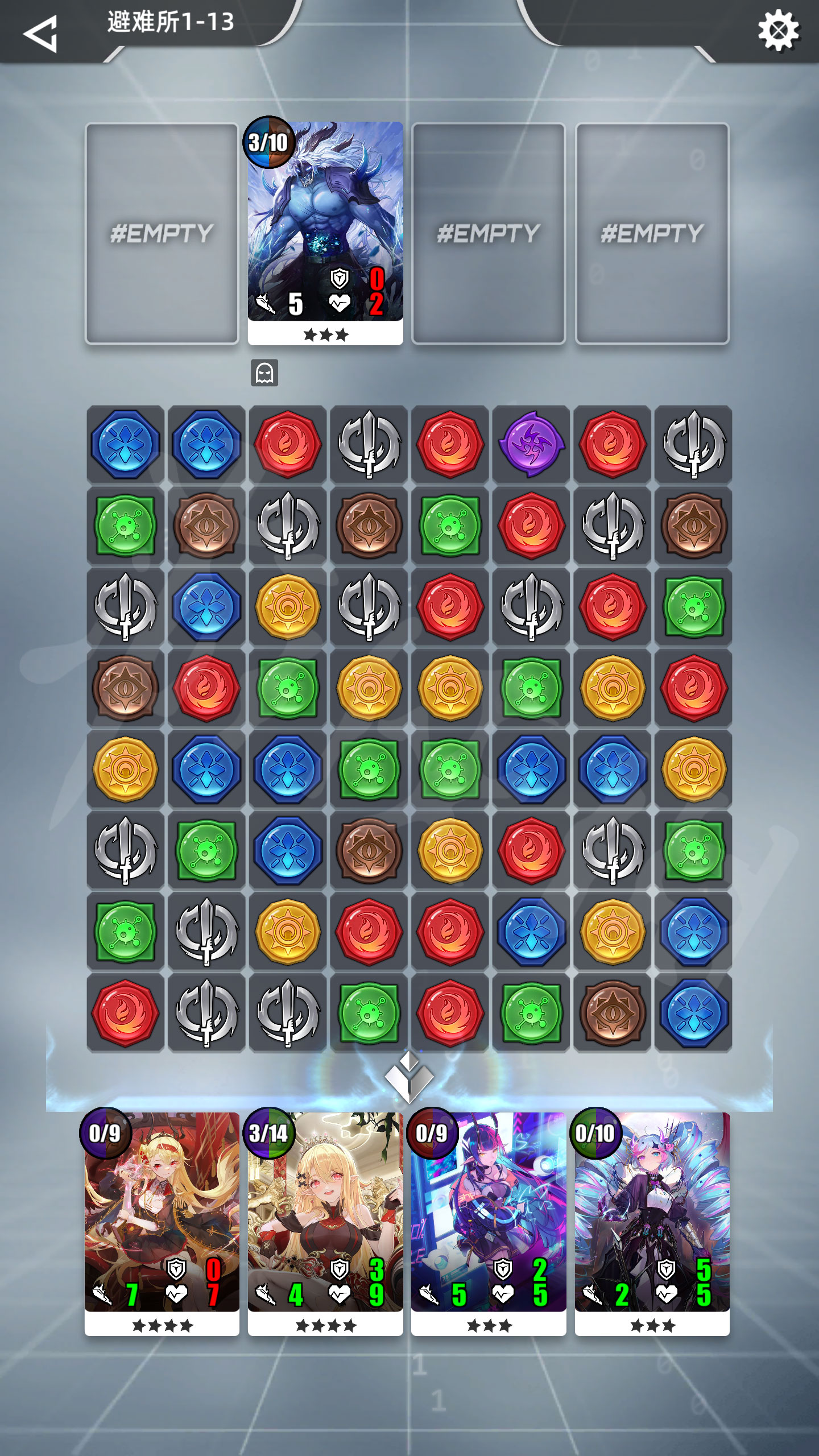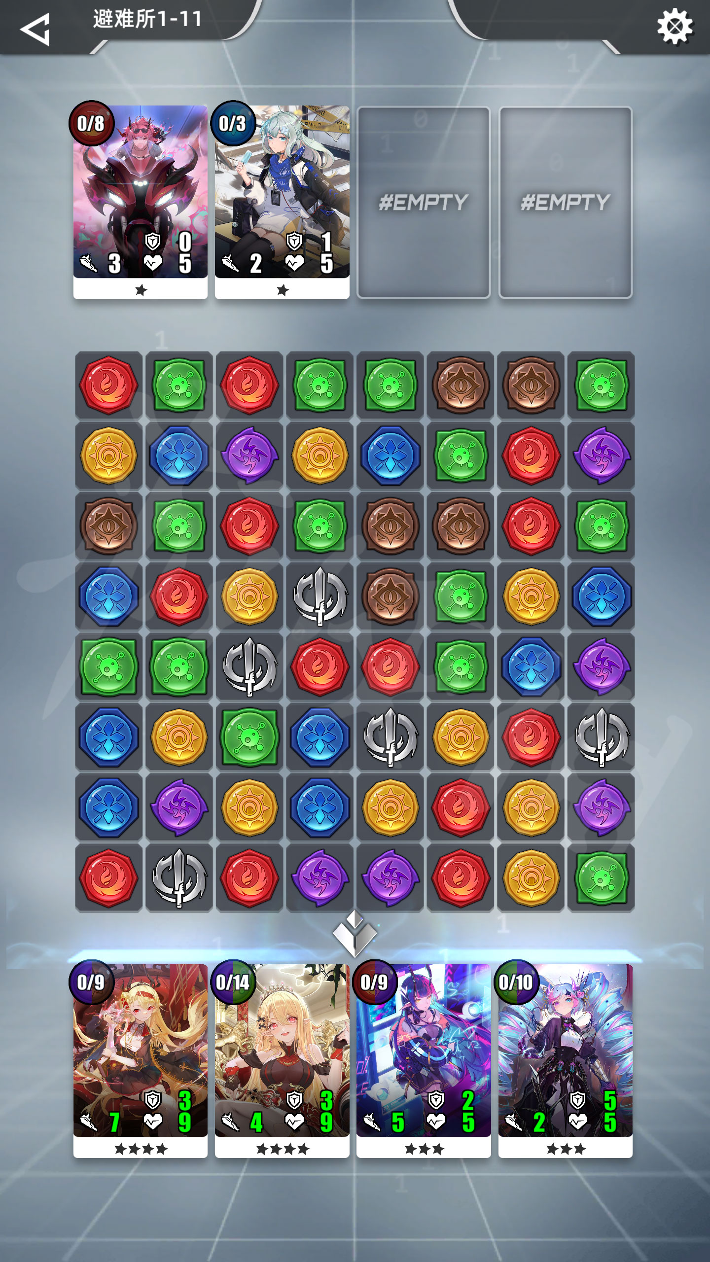 这个规则相当于对《mirror》中三消规则的简化,去除了物理和魔法攻击的差别,并且将棋子种类减少为两种,虽然也保证了棋子颜色的多样性,但只有对应属性角色才能吃到技能点积累的设定,大大破坏了玩家进行消除的正向反馈。