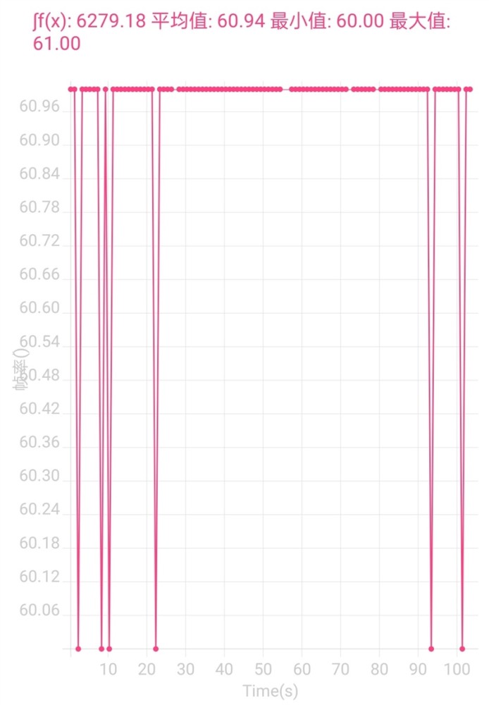 在快速匹配多人比赛中,《QQ飞车》整体帧率都能够保持在60帧左右,帧数数据图表虽然浮动较大,但仔细看旁边的数值,帧率都保持在60~61帧左右,平均帧率也有60帧,稳定的表现避免了游戏过程中出现掉帧、卡帧的问题。