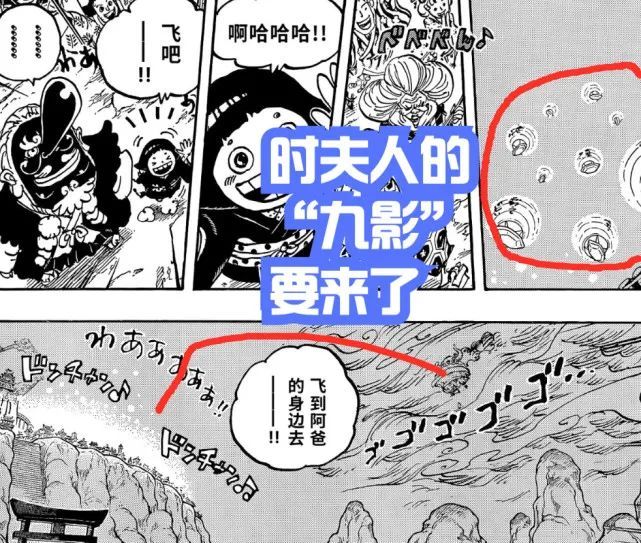 至于【九影】,肯定是通过大量的孔明灯反射的效果呀,再加上路飞的枪乱打招式,从而打倒凯多,实现时夫人的预言。