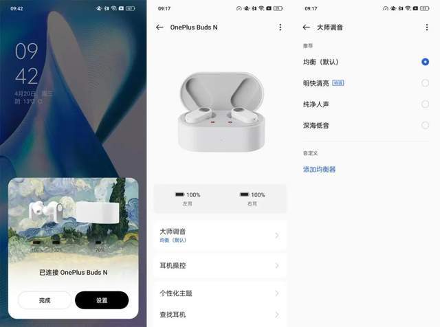 值得注意的是,在耳机操作界面,一加预留了4种调音风格,同时支持手动调节三频音域。在续航上,这款耳机单次续航可达7小时,配合充电盒使用可达30小时,基本续航是可以保证的。