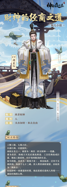 国安挂冠去,千古存其名,全新异妖灵陶朱公现身《神都夜行录》。对这位名臣与富商的结合体你是否充满好奇,结识的机会就在眼前,切莫错过!