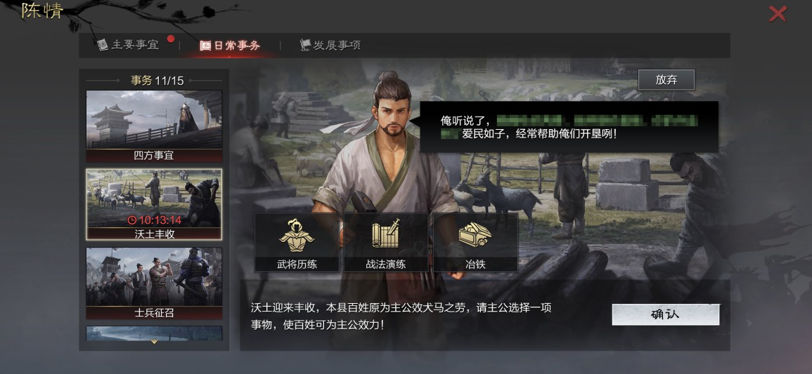 正如三国时期多股势力对农耕田地互相掠夺的真实状况,率土之滨本次的沃土玩法也是基于历史时代而设计的。在游戏中,若是玩家能够令一块土地保持丰收状态,便会获得同县百姓的爱戴,这些沃土丰收事件不仅会给玩家带来丰富的收益,也能凸显出在战乱时期百姓生存不易的真实感。