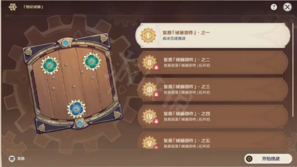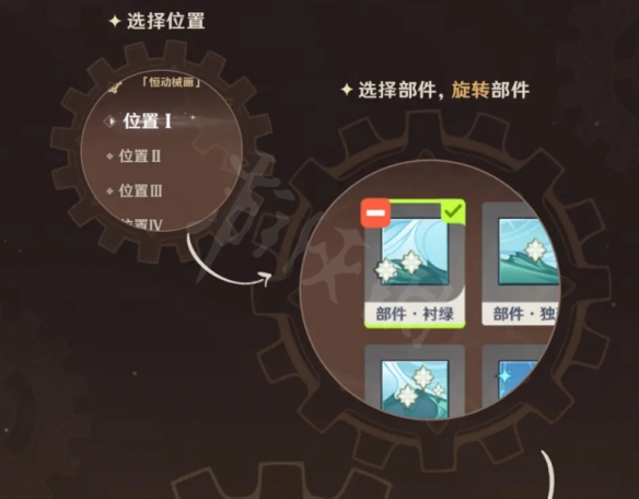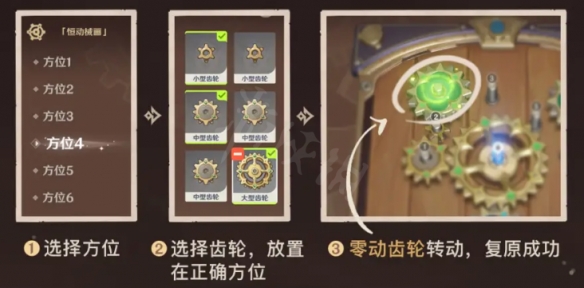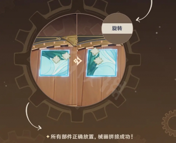 在复原「械画部件」的过程中,旅行者需要合理使用各类齿轮零件,使齿轮互相接合并驱动零动齿轮运转。
