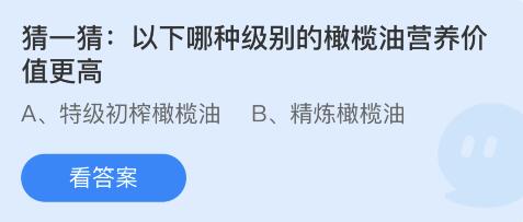 蚂蚁庄园8月30日给大家带来了问题:【以下哪种级别的橄榄油营养价值更高?】,橄榄油的评级越高,其中所含的营养价值也会越高,那么接下来小编带来了今日的答案,一起和小编来看看吧。