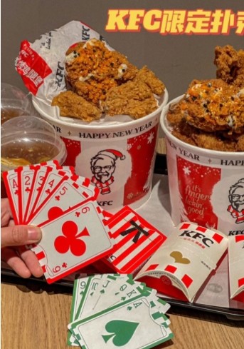 4、首周购买圣诞惊喜桶送KFC限定扑克。