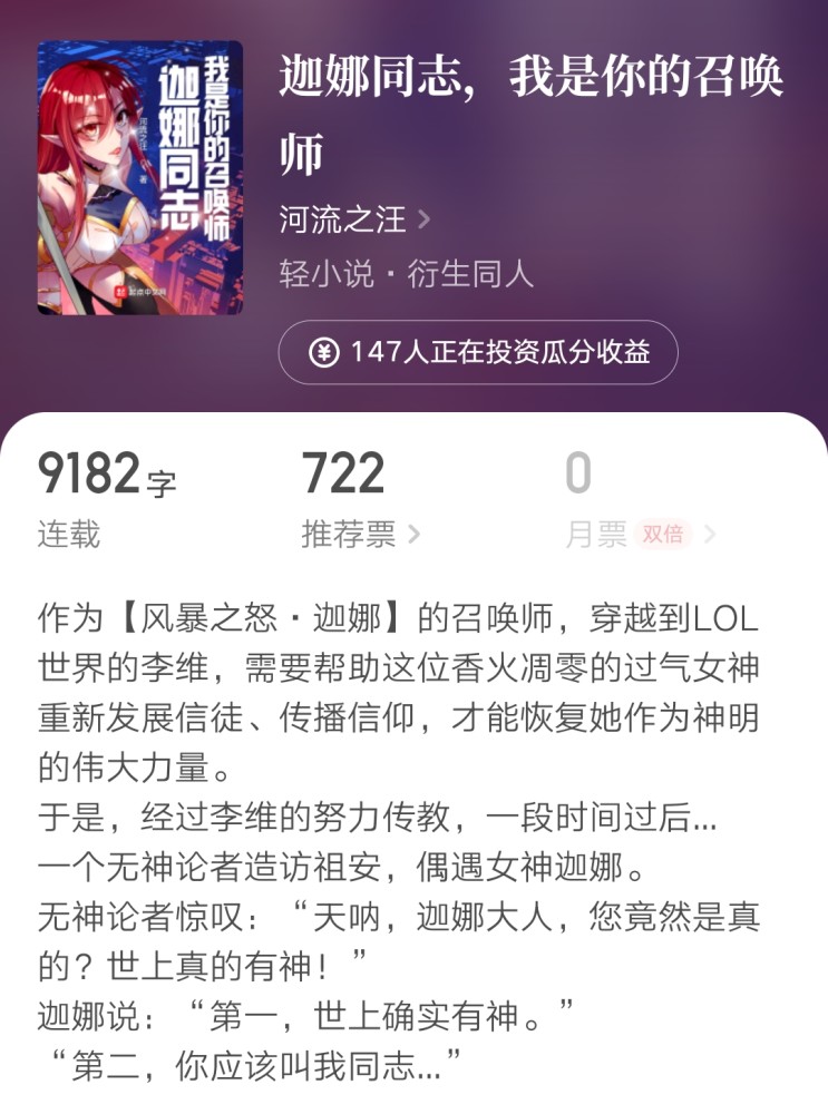 书名《娜迦同志,我是你的召唤师》,再结合简介,这是要走红色风格的神灵之路,也不知道这么写是否可以。