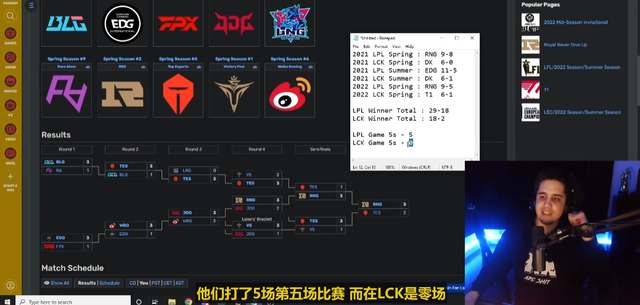 随着RNG在2022季中冠军赛捧杯,在LPL夏季赛开赛后IWD直播过程中也是谈到了为什么LPL能连续在三次国际赛事中LPL一号种子都能在第五场击败LCK一号种子的问题。IWD认为之所以LPL近几年在国际赛事取得了出色的成绩,真正原因是LPL有着一个相比LCK以及其他赛区好很多的“季后赛系统”。而通过后面IWD的言论,可以看出这个季后赛系统其实就是指的双败赛制。