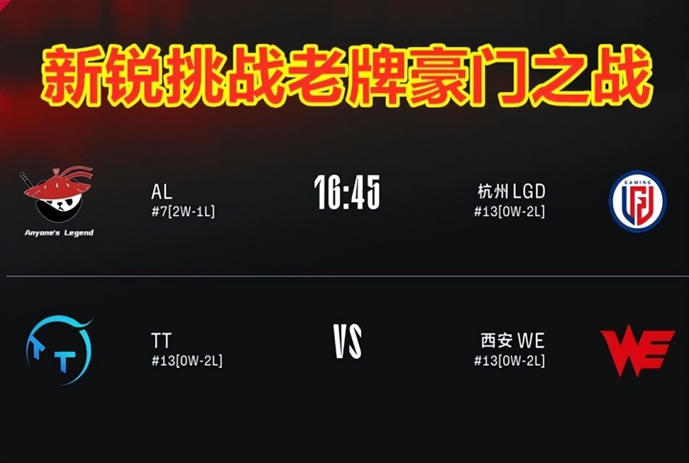 英雄联盟S12赛季,LPL夏季赛在酷暑中继续鏖战!6月23日的比赛,由AL对阵杭州LGD,以及TT大战西安WE两场比赛组成。细心的小伙伴,应该已经发现,这两场比赛,完全可以看成是两支新锐战队挑战LPL老牌豪门之战!