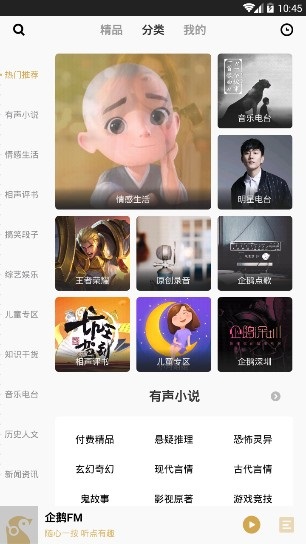 企鹅fm包含了有声小说、音乐电台、新闻资讯、相声曲艺、搞笑段子、影视综艺、历史人物、广播节目、知识干货等等节目。是随时随地陪伴在你身边的有声娱乐平台。