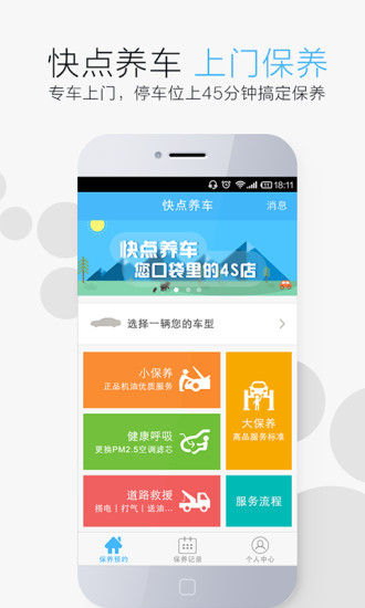 这是一款手机汽车保养软件,使用该软件将为你提供优质、便捷、安全的汽车上门保养服务,为车主提供了方便,在家就能做保养,除了上门保养之外,其他还支持24小时服务,帮助车主省时、省心、省钱,有需要的车主们赶紧下载吧!!