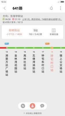 按线路查询属于比较模糊的查询,在界面输入目的地,就会出现所有车站的实时位置,同时可以通过地图看到车辆所在位置,选择其中一条线路,即可知道这条线路的所有站点。