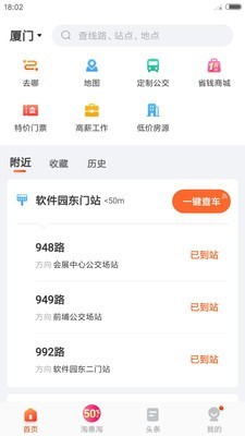 按站点查询,输入起始站和目的地的站名,即可出现所有的公交线路显示所在的位置以及所经过的车现在到达什么地方等信息。这一功能模块最大的特点是具有自动感知功能,可以提示出距离你最近的公交站位,因此即使你不知道自己在哪儿,照样可以查询。