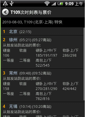 (12) 收藏车次信息,方便经常出差的人士查询。