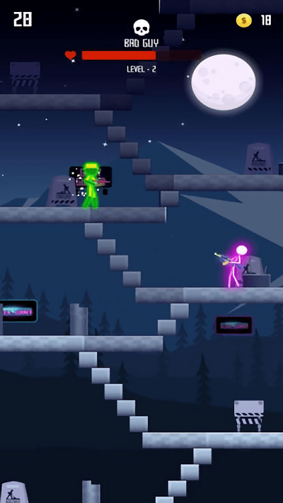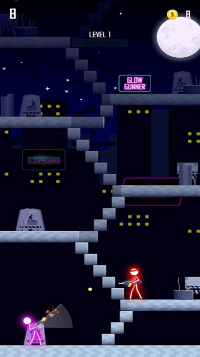 发光枪手是一款非常有趣好玩的休闲射击手机游戏,游戏中的角色闪耀着不同的颜色。你可以在黑暗的游戏屏幕上清楚地看到它们。游戏内提供了有很多种玩法。这是一款非常有趣的射击游戏。
