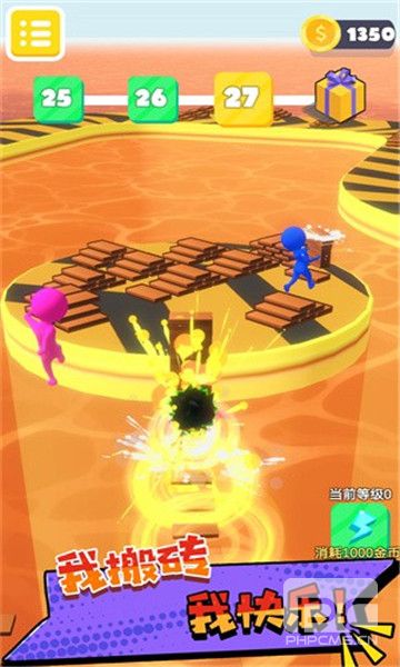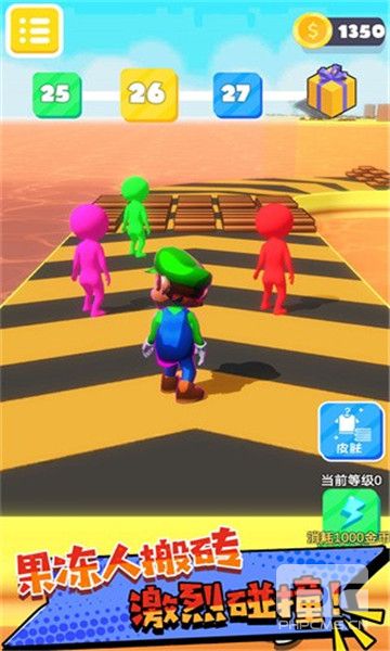 每次的比赛都是有几种颜色的角色可供选择。玩家需要做的就是在赛道上收集到相同颜色的砖块来铺展自己的跑道。在适当的时候由其他玩家的砖块来制造自己的近道机会,这样方便自己以最快的方式来完成比赛。