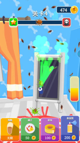 2、游戏有一个非常新颖的游戏主题,收集游戏中的各种道具,以便更快地消灭这里的蟑螂。