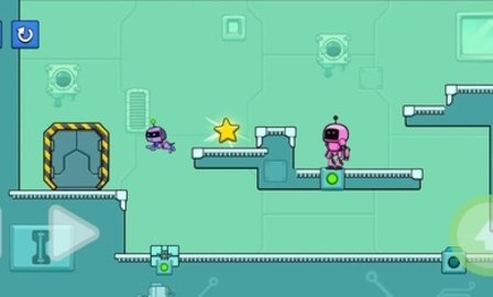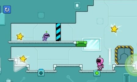 2、同时控制两个英雄,并激活按钮来打开门,移动平台,推箱子,收集星星以到达车站的出口。