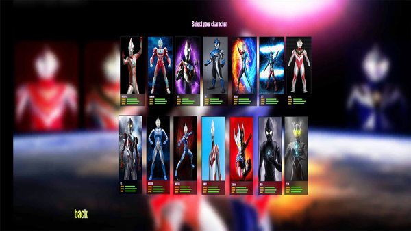 2.总共展示八种怪物和六个奥特曼游戏角色供玩家选择。