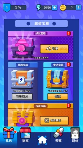 2、珍贵的宝箱在等着你打开,神秘的小猪会等着你打开,有更强大和多样的才能和纽带来增强战斗力。你还在等什么呢!