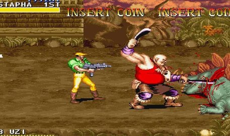 5、恐龙快打经典版是日本CAPCOM出品的一款著名街机游戏。在这部作品中,道具的作用得到了极大的强化,一切的枪支道具都有弹药的概念,用完后只能作为一次性投掷道具运用。你以至能够抓住Boss的武器去还击它,像桶这样的容器道具不再只是为了取得里面的道具而被突破,它们能够被举起和投掷