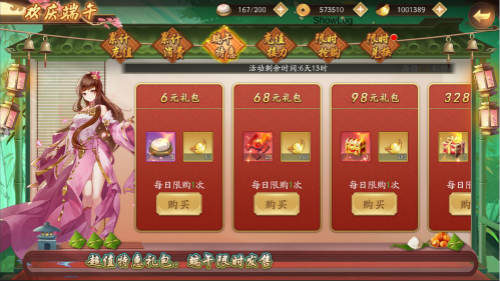 除了欢乐端午福利,各位少侠所喜爱的端午特惠商城也将限时上线。活动期间,少侠可前往游戏端午活动内的端午特惠,以超低优惠价格购买限定礼包,个别单个商品单人限购一次,各位少侠抓紧时间,千万不能错过哟!