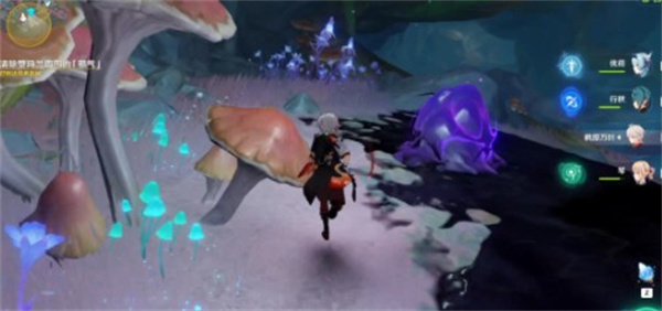 5、再去向赞玛兰汇报,获取任务物品然后沿着水流前往上游寻找邪气的源头,在荧光狭道北部和无名遗迹西南部,对着淤泥涌口使用流明石触媒的技能,出现一个可以交互的光点,在使用刚刚获取的物品就可以净化了;