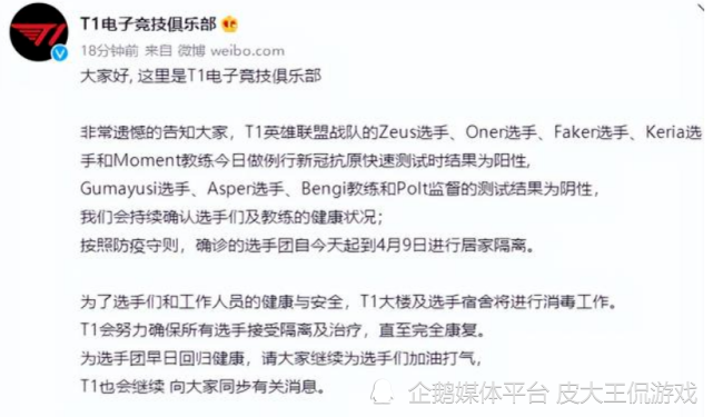 随着LCK赛区春季赛的结束,T1战队最终获得了春季赛的冠军,可是就在比赛结束之后,T1战队却传来了不好的消息,那就是队内4名选手已经确诊新冠阳性,而即将到来的MSI的举办地就在韩国釜山,面对疫情形势如此严峻的韩国,这次MSI季中赛也极具挑战性。