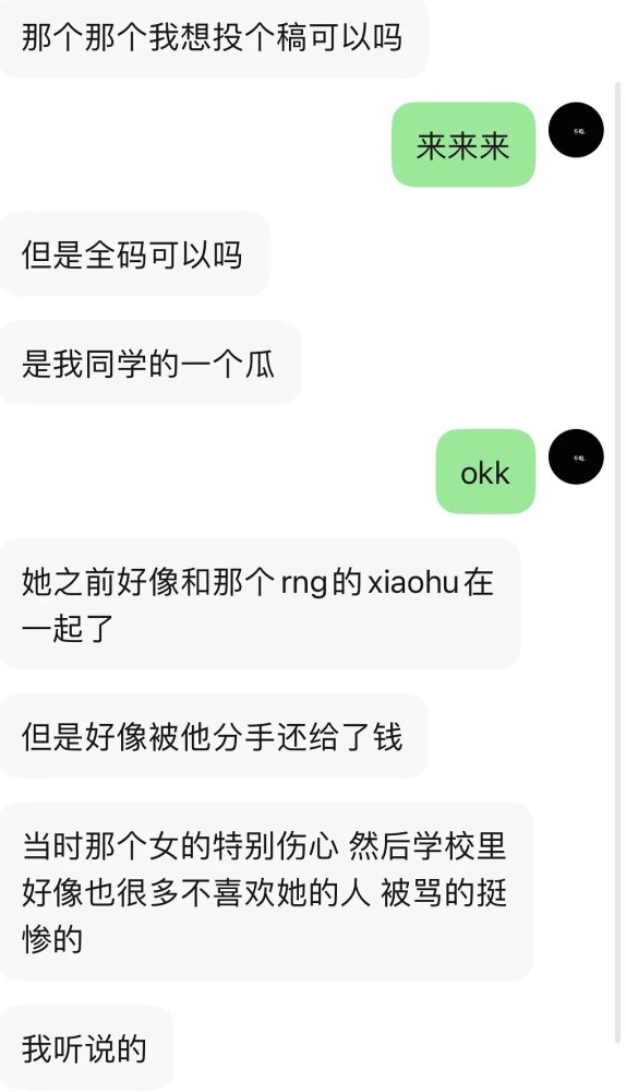 这个问题问出来之后,果然有人出来说了,说自己学校有女生和小虎恋爱过,但因为没有实锤被同组的人喷了,随后小虎的第一个前女友出来投稿了,这个前女友和前面说学校有女生和小虎谈过的消息就对上了。