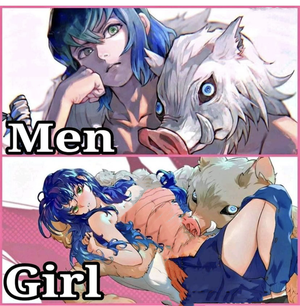 我知道男主炭治郎外表看起来就不像一般的男主那样热血,而内心的他更是非常温柔,从山蜘蛛篇他临时改变了总结的招式,就可以看出他内心的温柔不亚于一个女孩子。而善意就更不用说了,他那胆小而懦弱的性格,变成女孩子以后,简直就是日漫当中经典的一个女配角的形象。