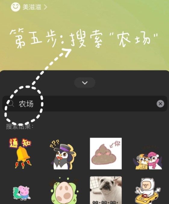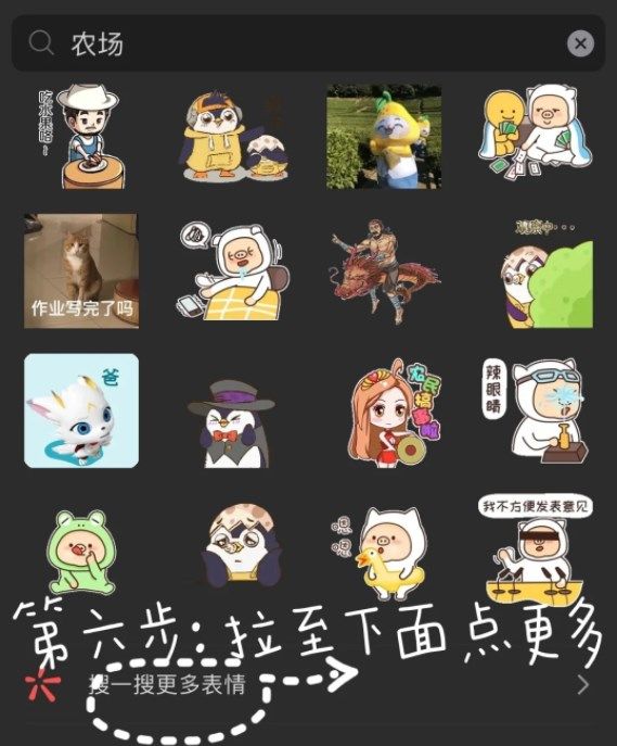 4、在搜索框中输入农场,并选择“搜一搜更多表情”。