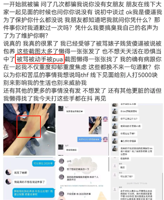 荔枝姐晒出了一些聊天记录,焕峰的确是花式喷人,让人没眼看。他对待这位女友毫不留情,甚至称:我都给你买衣服了,你叫什么叫?奇怪的是,当初荔枝姐发的动态似乎很爱焕峰,完全没看出这些问题。她甚至晒出带着淤青的手臂,称焕峰对自己动手了。
