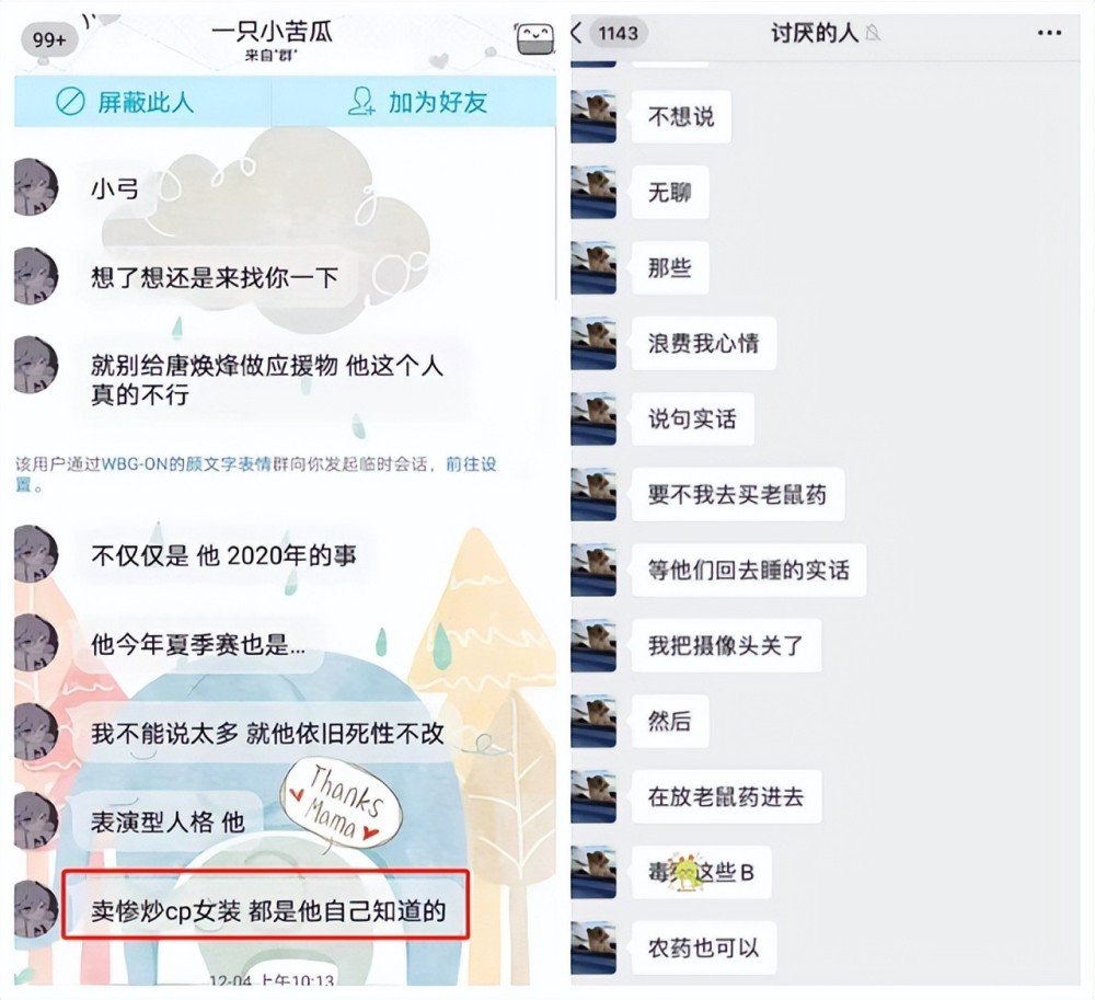 第二点就是他对队友的态度。如果有人说焕峰跟女友两人是“家事”,那他对待队友的方式就更离谱,甚至让人骨寒毛竖。曾经喜欢焕峰的苦瓜姐说,焕峰完全知道跟队友炒cp这些事。不止如此,他跟荔枝姐聊天是说到队友喝自己的水。
