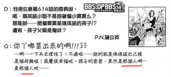 在SBS中尾田对于海米提出的问题也是吓了一跳,毕竟他并没有打算公布这个秘密。如果说玛琪诺跟村里人结婚生的孩子,那自然是没什么。