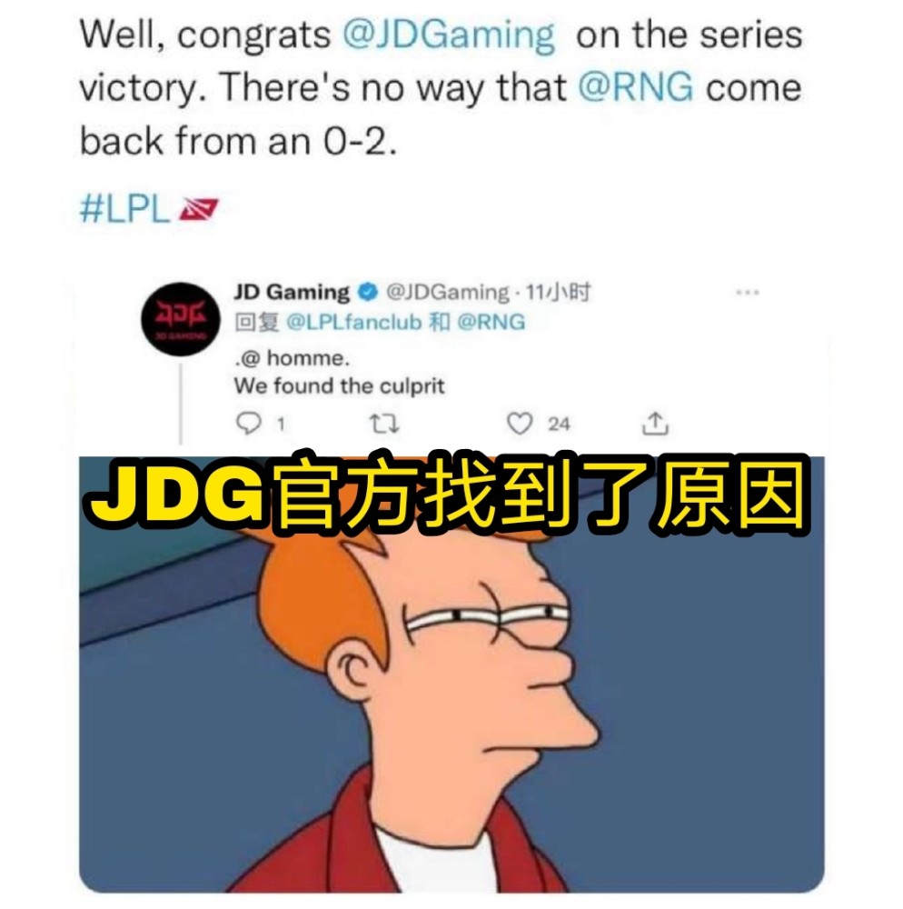 而在这之后,JDG官方似乎找到了此次被让二追三的原因,JDG官方外网发文称:让我们恭喜JDG获得胜利,RNG没有机会在0-2落后的情况下翻盘的。被RNG让二追三后,JDG官方补充:红米是罪魁祸首!从Homme教练职业生涯来看,在15-16年红米执教VG时,就遭遇了两次被让二追三。一次是2015年LPL夏季赛季后赛,iG让二追三战胜VG,另外一次是2016年LPL冒泡赛首轮,Snake让二追三战胜VG。再加上今晚被RNG让二追三,在 LPL历史七次的让二追三中,Homme教练经历了三次被让二追三。