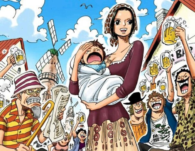 我们有必要了解一下玛琪诺了,在剧情中,玛琪诺扮演的是一位风车村里酒吧的老板娘。性格善良温和,经常照顾路飞、艾斯、萨博。她看上去很平凡,但越是这样的角色,越令人捉摸不透,因为夏琪也是如此,但夏琪可是雷利的同事,平凡人有着不平凡的故事,我相信玛琪诺也是如此,而且在红发离开风车村的时候,玛琪诺手上就抱着了一个绿色头发的小孩,那么这个小孩又是谁的?
