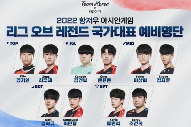 既然这次亚运会金牌含金量十足,所以LPL对于参赛选手的选拔也是相当慎重,尽可能派出最强的阵容组合。当然LPL夺冠最大的竞争对手LCK也并不例外,韩国电竞协会对于这一次亚运会的选拔格外用心,毕竟上一次亚运会的表现赛中,韩国代表队在决赛中1-3不敌中国队屈居亚军,这一次必然想要复仇拿走冠军的。就在前两天,韩国电竞协会公布了亚运会阵容的初选名单,今年LCK春季赛常规赛豪取18连胜并一举拿下春季赛冠军的T1全员都入选了亚运会阵容。除T1的选手之外其他入选的五名选手也来自于常规赛最佳阵容之中,可以说LCK方面的情况已经非常清楚了,就是要派出目前状态最好的选手来参战。