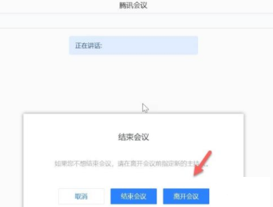 5、之后,会在页面底部出现弹框,弹框内有“离开会议”和“取消”的选项。