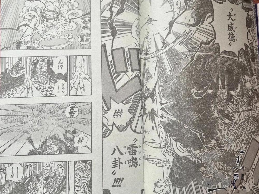 凯多想要击败路飞,只能依靠霸王色霸气的力量,他说过,恶魔果实能力并不是无敌的,只有霸王色霸气才能征服一切。前任海贼王罗杰就是依靠霸气征服伟大航路,凯多在霸气的领悟下,使出了更强的一击,这是凯多的新大招大威德雷鸣八卦。路飞的身体被击中,嘴里吐血了,牙齿都被打掉一颗。