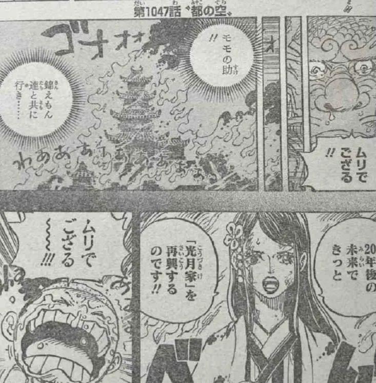尾田好像在不断拖延剧情,不断给桃之助,九侠,小紫,黑炭大蛇等人戏份。这些人虽然是和之国篇章的主要人物,但戏份太多了,不管是重伤,还是接近死亡,都能仰卧起坐,百兽海贼团就惨了,只战败了一次,就没有他们的戏份了。桃之助与大和正在观战,他们两人在观看凯多与路飞的战斗。