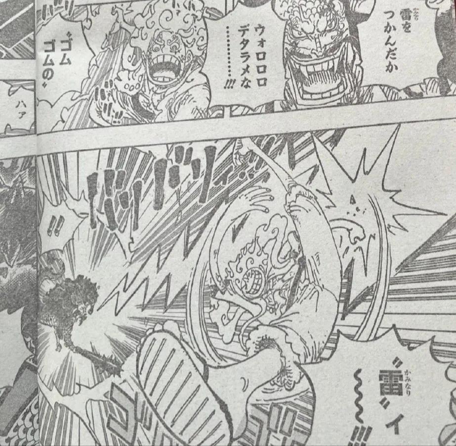 路飞使用雷电的力量攻击凯多,徒手抓住雷电,以雷电为武器,然后将雷电扔向凯多。凯多并没有正面对抗雷电,而是躲开了雷电的攻击,路飞的攻击落空了。凯多也是有头脑的家伙,并不像四皇大妈,任何攻击都是用身体迎接,连闪躲技能都不会。大妈才会被基德和罗两人击败,真是四皇之耻,凯多就聪明太多了,实力也比大妈强悍。