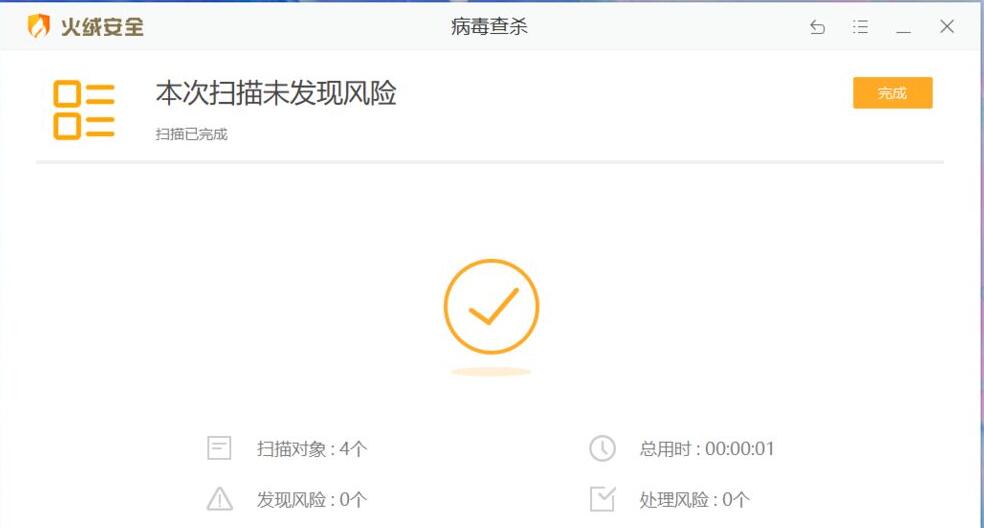 第五步,点确定,会调出火绒软件开始扫描,结束后自行关闭窗口即可。