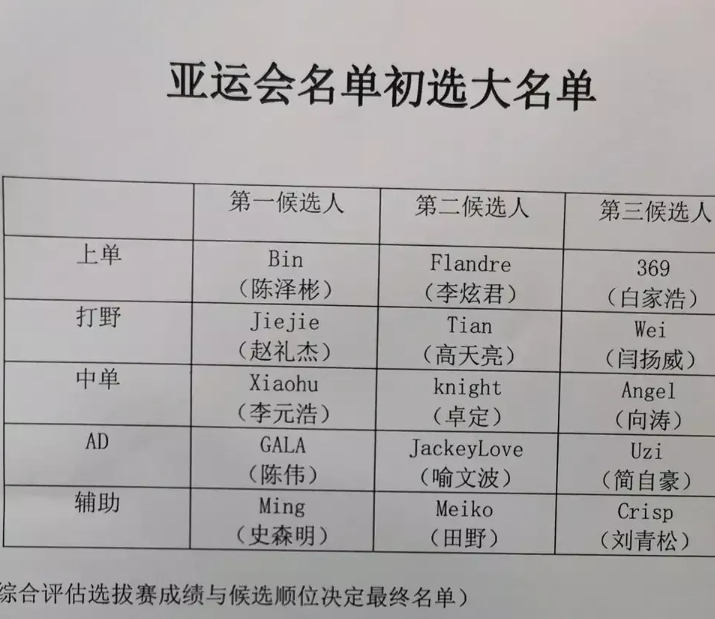 LPL亚运会初选名单曝光
