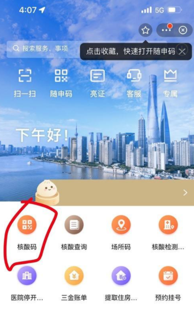 点击首页“核酸码”即可打开核酸检测码。