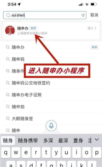 打开手机支付宝,点击进入“随申办”小程序。