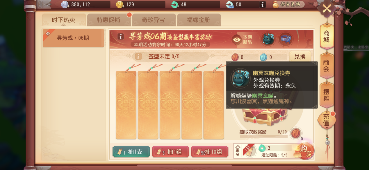 另外,第6期【寻芳戏】将开启优惠低至1折的寻芳签,凑出不同签型,即有机会获得包括全新坐骑在内的丰富奖励。而游戏内外观商场,将会开放购买【玉竹风】(锦衣)、【翠玉珠帘】(面部挂件),想要换上新衣迎接悠长夏日的少侠可以前往购买。