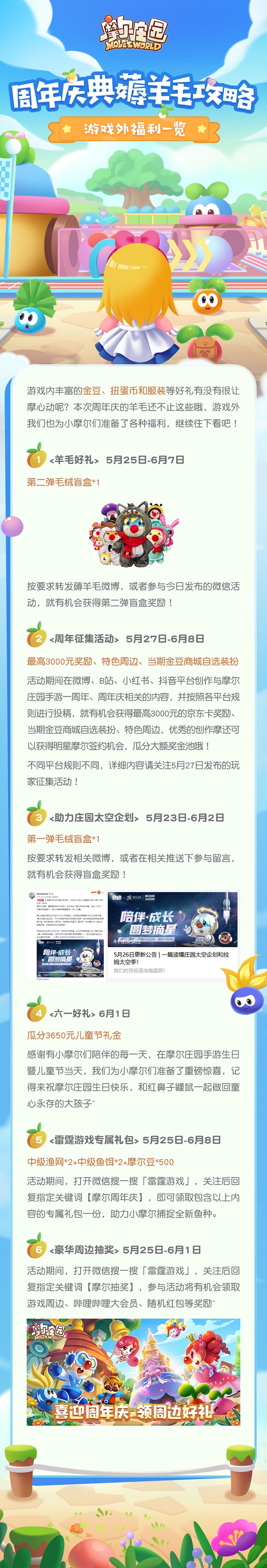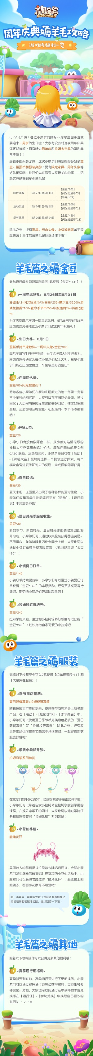 更新内容浏览完了,是时候给大家揭晓新季节、周年庆福利了!这就是庄园管理处今天的第二个任务——为了方便各位家摩领取福利,庄园管理处特意给大家总结了游戏内外的薅羊毛攻略,码住这两张图↓