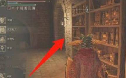 2、接着,我们清除怪物,从下图所示的书架旁,右转前行;