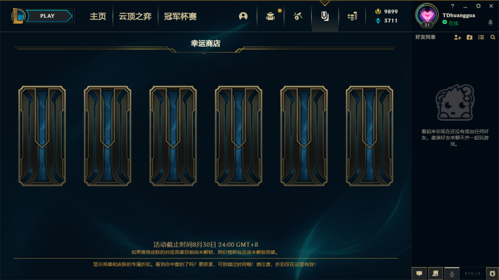 根据外服数据,12.14版本将进行神话精粹商店轮换。